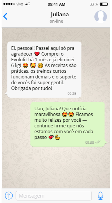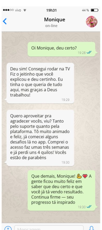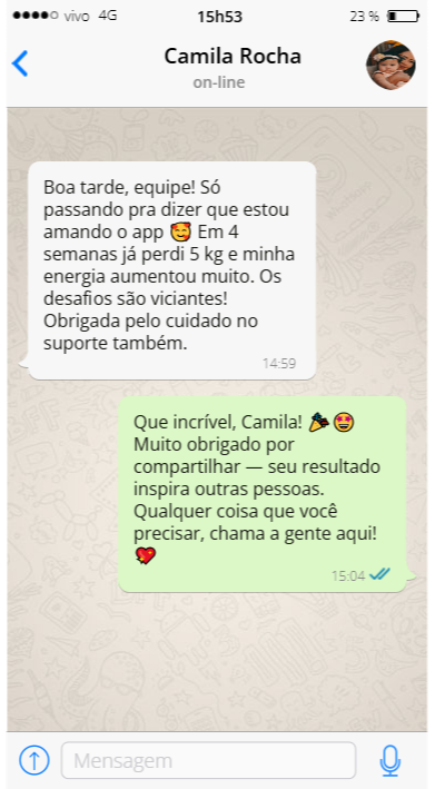 Nossa equipe está sempre disponível pra tirar dúvidas, motivar e te ajudar a continuar até o resultado final. 💪💗
